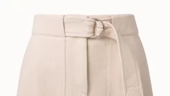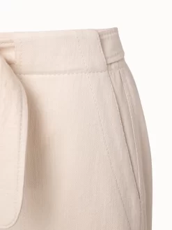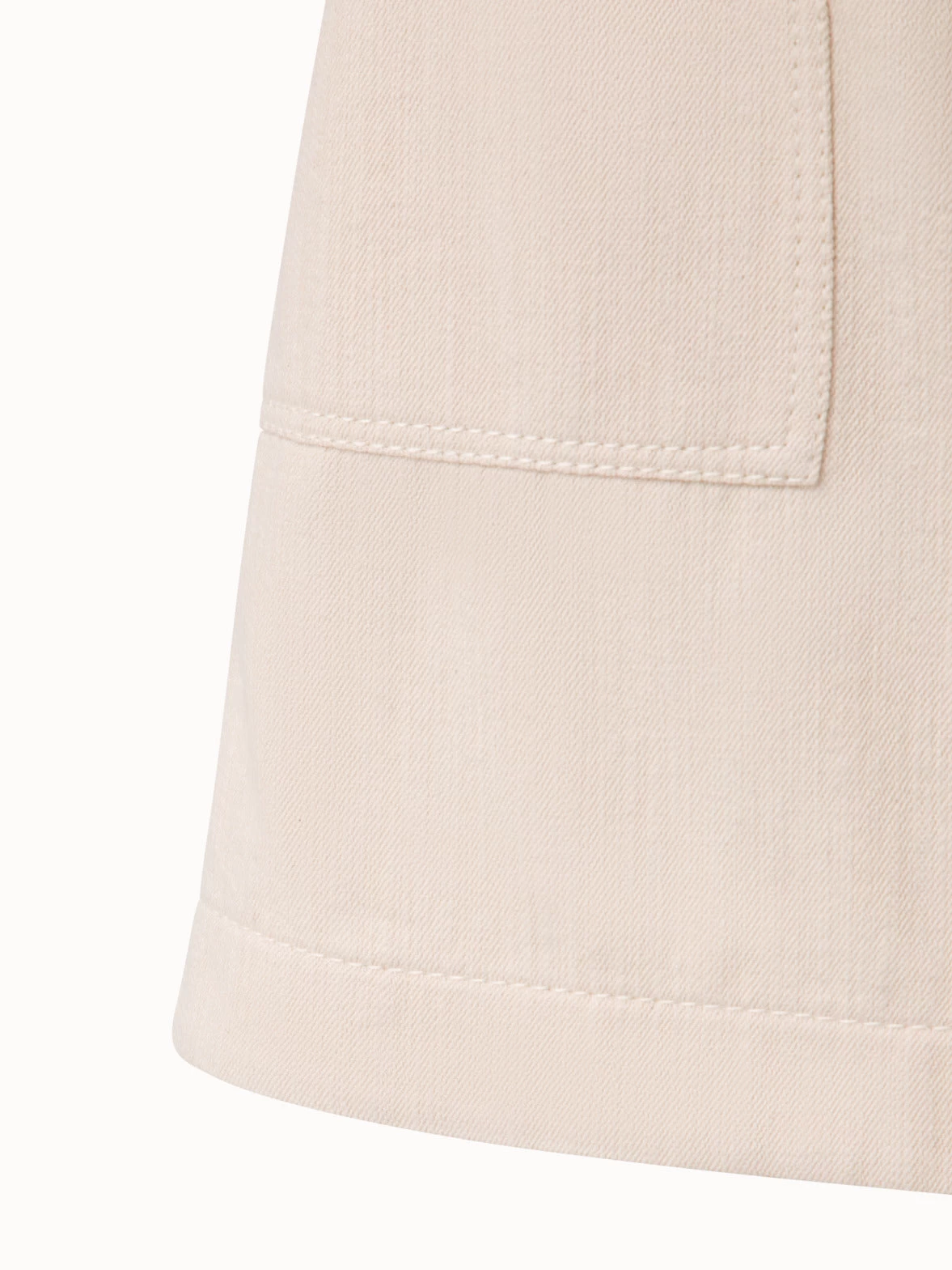 This Akris punto A-line mini skirt is crafted in soft cotton stretch yarn dyed denim. In classic denim fashion, it features belt loops that can be used if you decide not to wear the included D-ring belt. Large patch pockets add practicality that is too often missed in skirts. Ends above the knee.