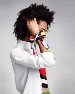 This cheerful allover kinderstern print twilly in silk twill is a versatile accessory. Tie around your neck, wrist or handbag for a pop of color. Measures 5 x 122 cm.