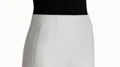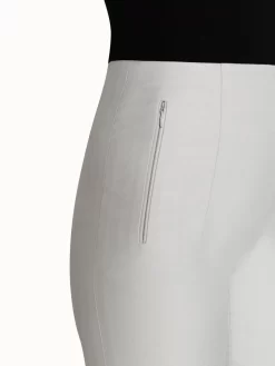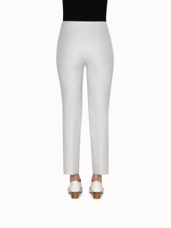 A soft feeling for your legs with this pants in cotton silk. Thanks to its ankle lenght, your favorite shoes will be highlighted. The slim leg will also flatter your silhouette Features zip pockets and a size zip.