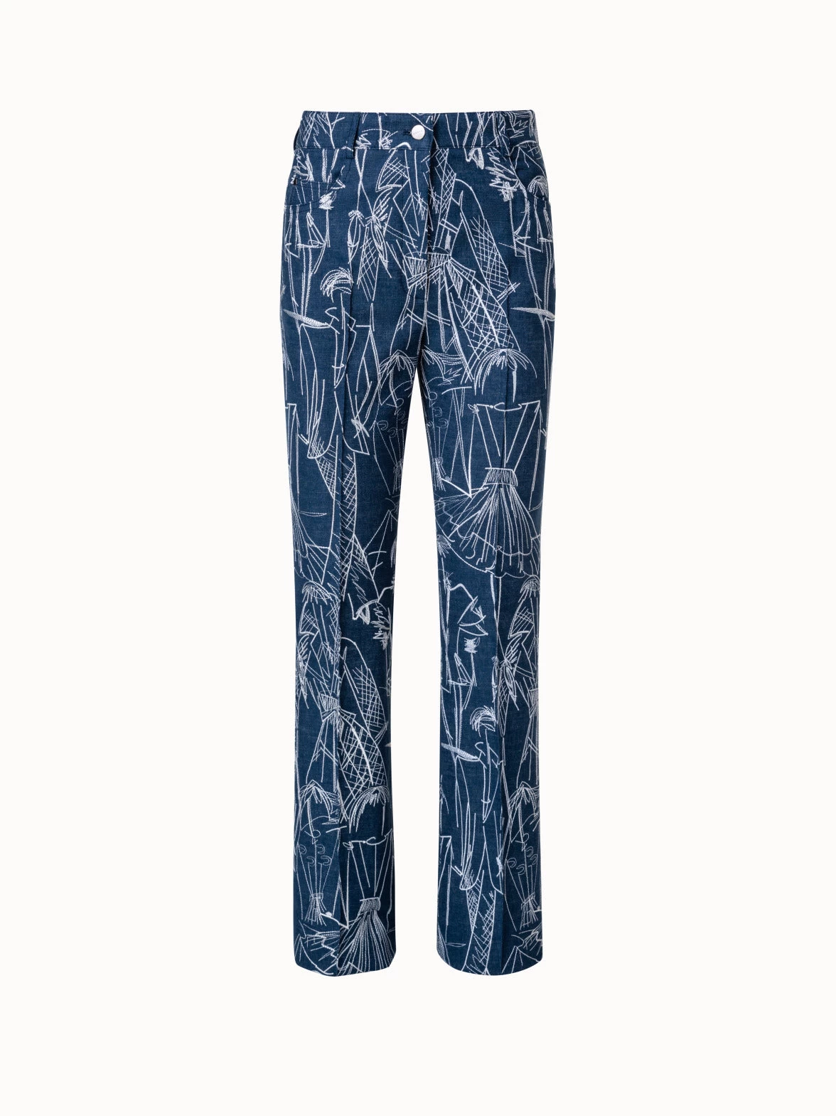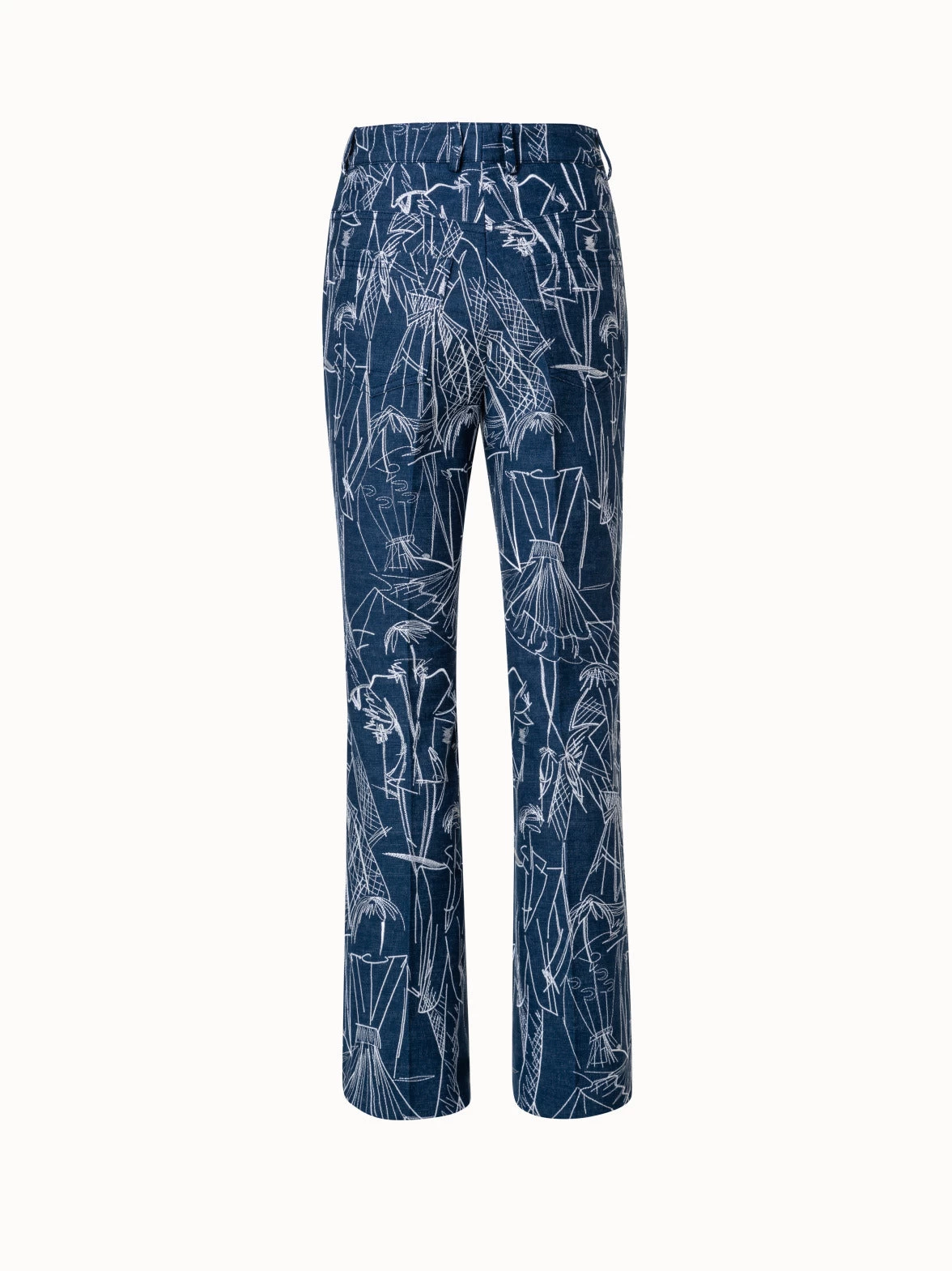 Ideal for everyday wear, these Akris cotton stretch denim pants Farid offer comfort and versatility while being elevated through the embroidery. They have a slim fit at the hips and thighs, then falls into flared leg bottoms for an elongated look. The classic denim style is completed with a front closure and five pockets.