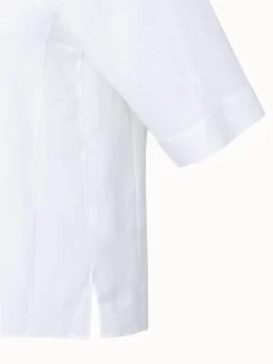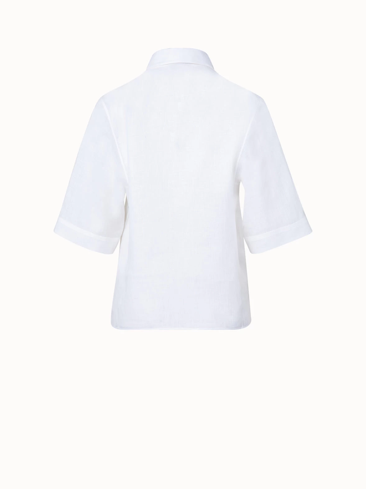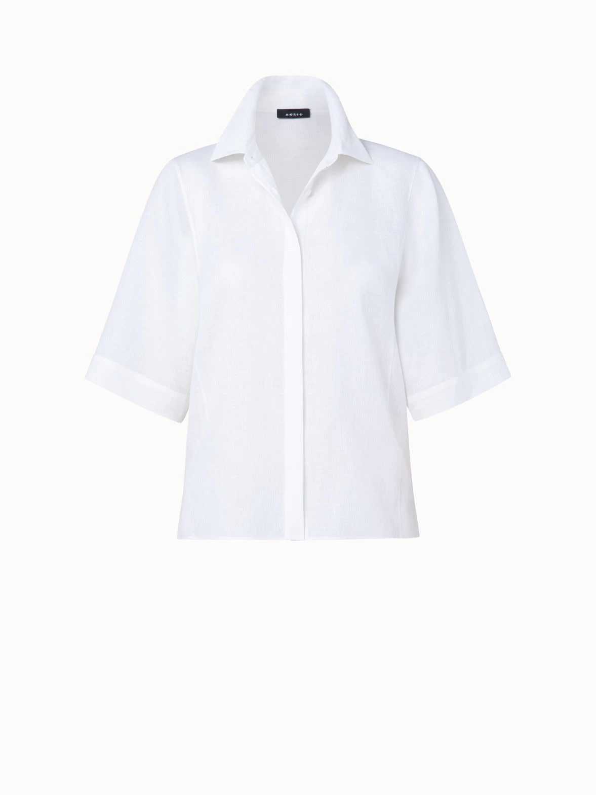 This Akris blouse is crafted in linen voile, giving it a lightweight feel and tactile structure. It features a slightly boxy fit, elbow-length sleeves, and hem slits that create a modern yet sophisticated look. A shirt collar and covered button placket complete this style.