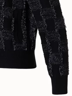 AKRIS Cashmere Cotton Square Fringe Jacquard Knit Cardigan