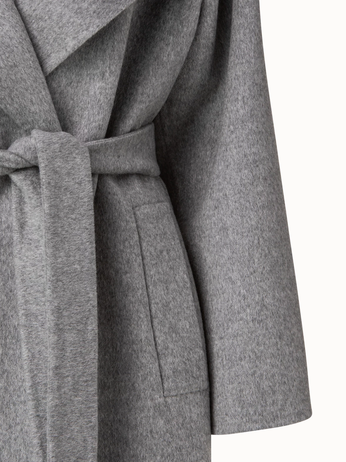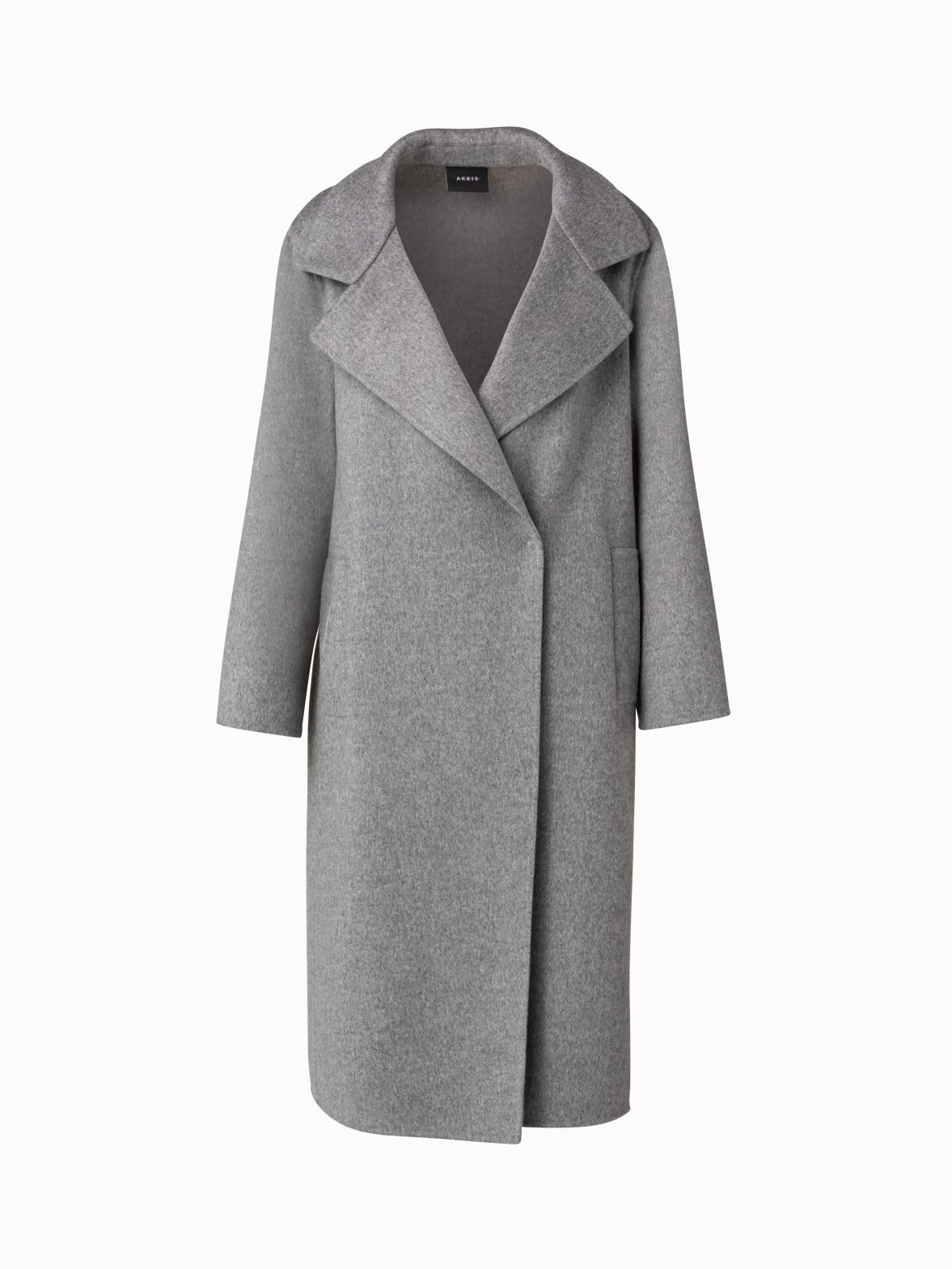 This Akris coat Fada is a modern everyday piece that keeps you looking stylish and feeling comfortable wherever you go. It is crafted in cozy cashmere double-face melange that makes it perfect for traveling and wearing in various temperatures. The toned-down trench style with a large lapel collar, covered button panel, and self-belt lets you dress it up and down. Pockets add functionality.