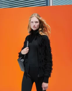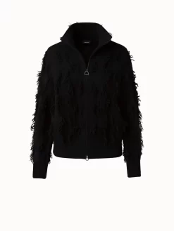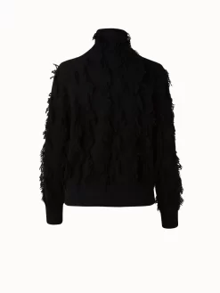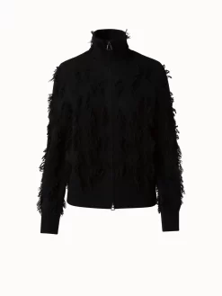 AKRIS Cashmere Fringe Square Jacquard Knit Blouson