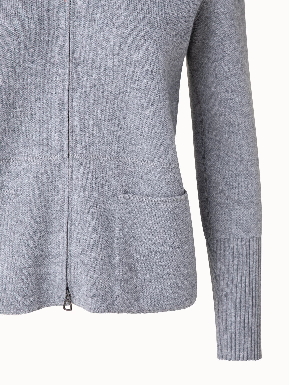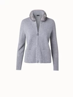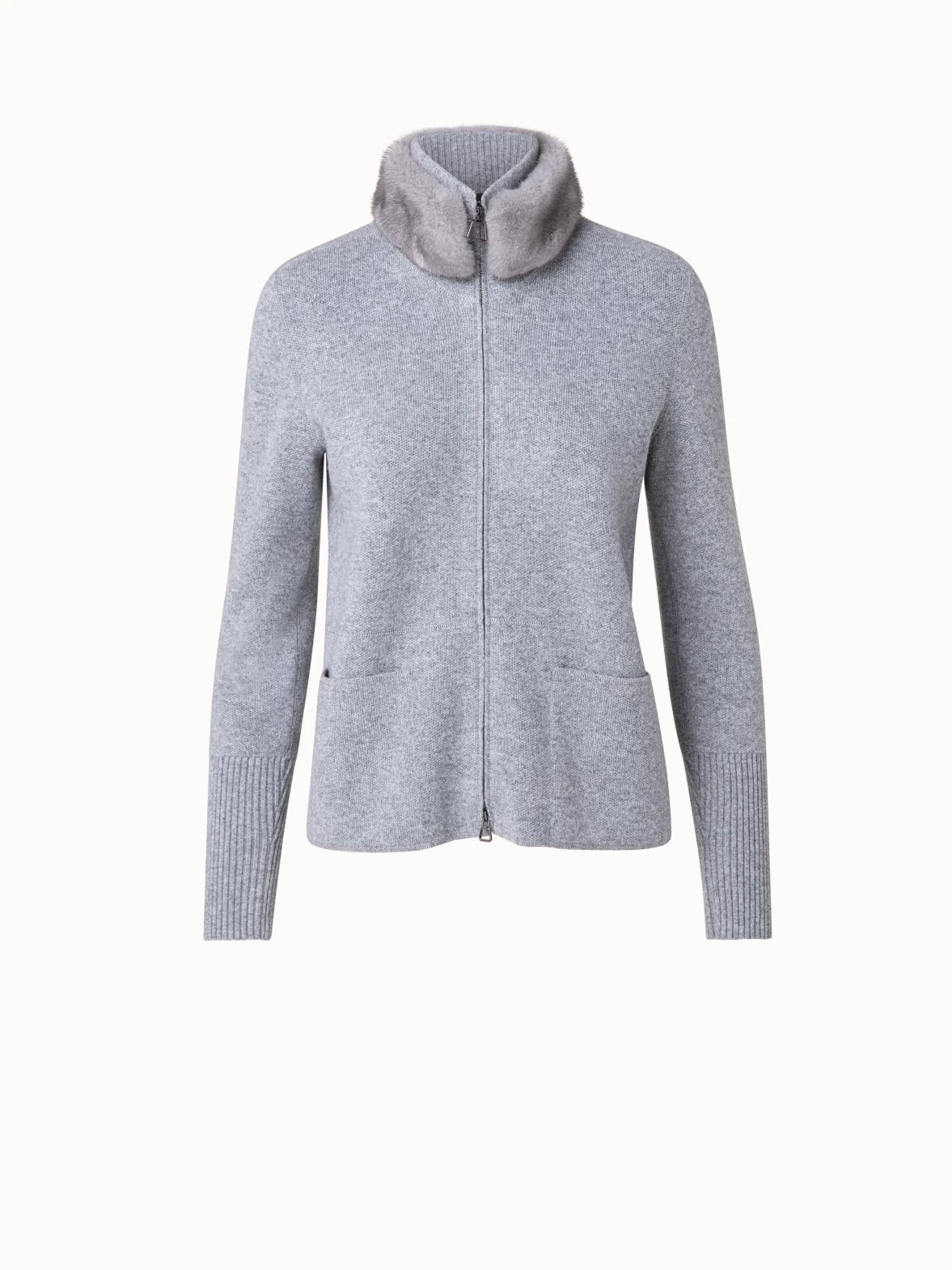 AKRIS Cashmere Piqué Zip Cardigan With Detachable Mink Fur Collar