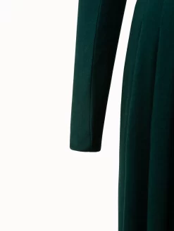 Our cashmere silk jersey is pure, unmatched luxury. This figure flattering day dress is the answer to elegant yet comfortable dressing. Designed with a v-neckline, fitted waist, and soft front pleating with a side slit, this dress has graceful movement. Includes a tonal trapezoid belt to polish the look.