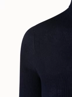 This seamless fine gauge Akris rib knit pullover is created for comfortable wear all year round. Crafted in cashmere and silk, it is soft and soothing against your skin and has an elegant look. It works perfectly as a standalone piece and for layering when temperatures drop.