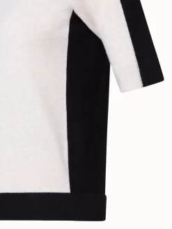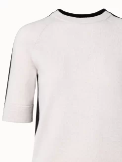 This Akris short sleeve cashmere pullover features a two-tone design that adds contrast and a subtle geometric touch. Cut for a regular fit with a round neck.