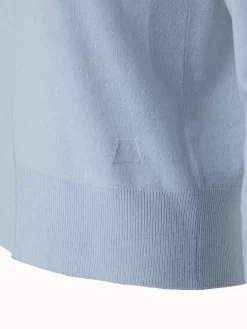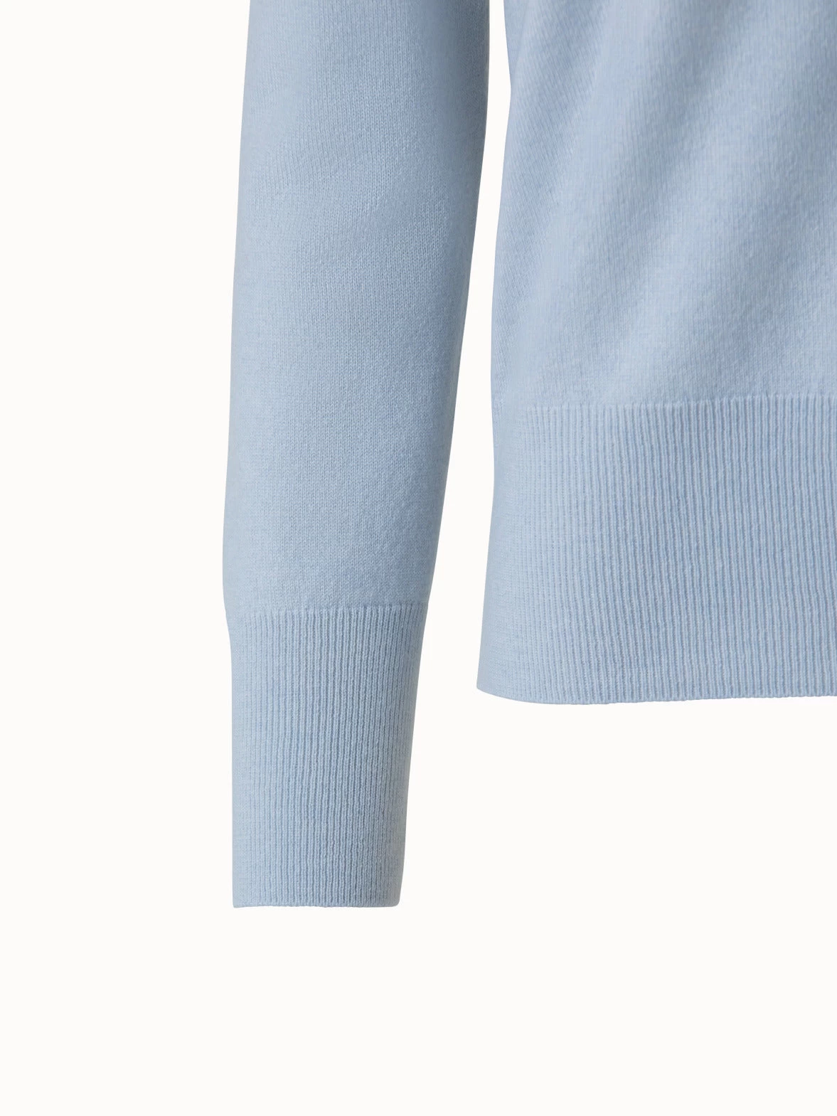 A prominent purveyor of high quality cashmere, Akris is renowned for its well-crafted and luxuriously soft sweaters. This one has a ribbed hem and cuffs that allow it to hug your body in a flattering way while a front middle seam adds an interesting detail.