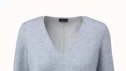 A prominent purveyor of high quality cashmere, Akris is renowned for its well-crafted and luxuriously soft sweaters. This one has a ribbed hem and cuffs that allow it to hug your body in a flattering way while a front middle seam adds an interesting detail to the front. For a chic and cozy look, pair pack to the matching cashmere knit jogging pant.