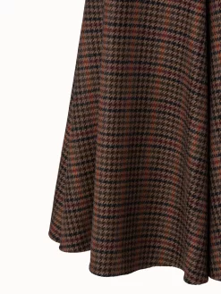 This Akris midi skirt is crafted in checked wool. It features a voluminous flared godet cut that pairs perfectly with formal jackets, coats, and knits.