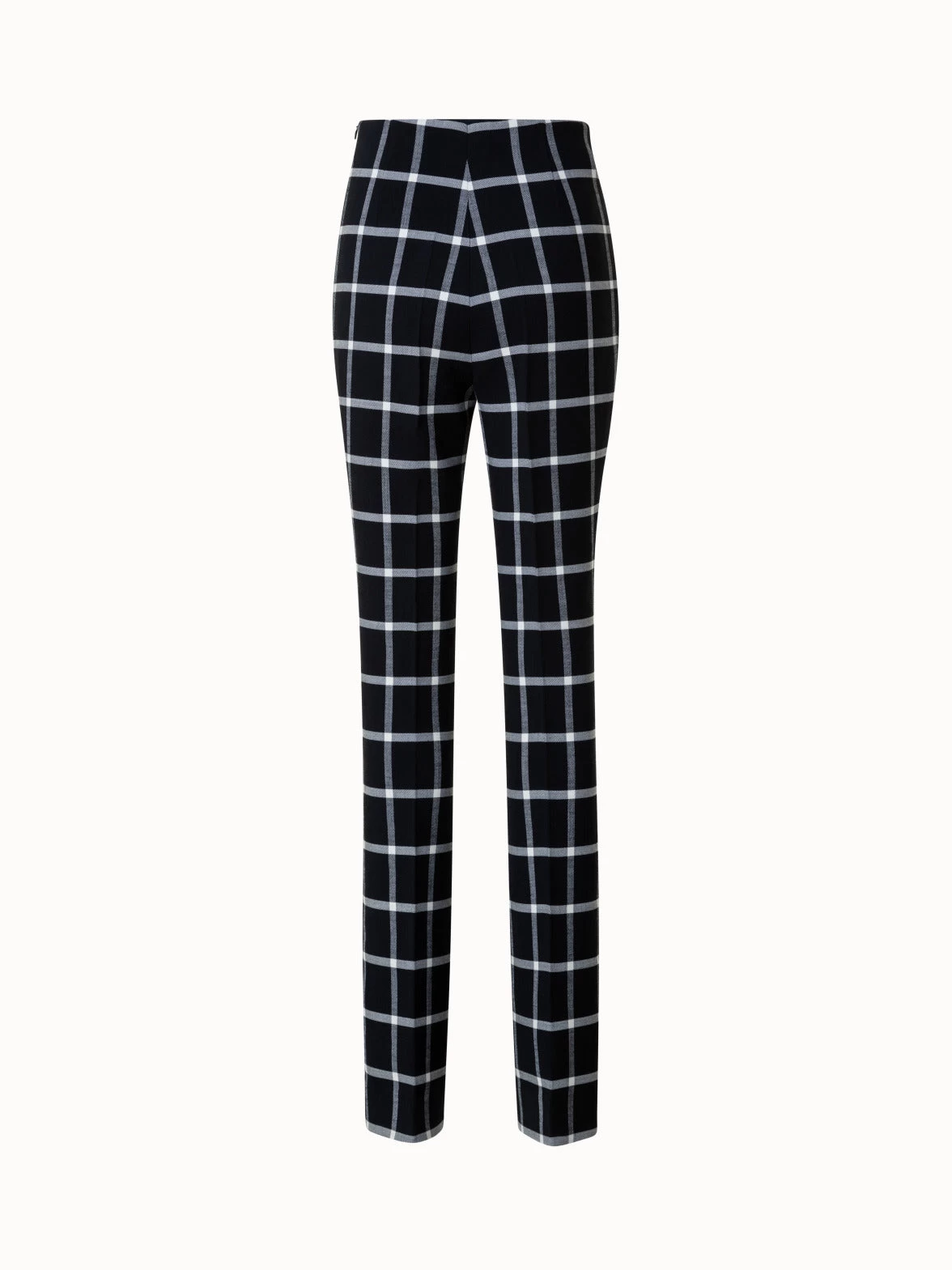 These Akris FARALDA pants are crafted in precious wool stretch double-face with an elegant check for unmatched comfort and versatility throughout the seasons. They are cut with a sleek high waist that closes with a hidden side zip and button. The silhouette is slim at the top and falls into a strong bootcut leg.