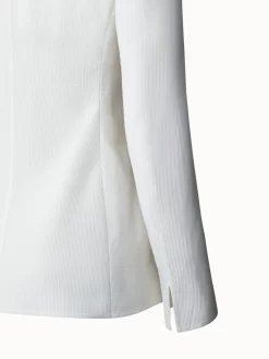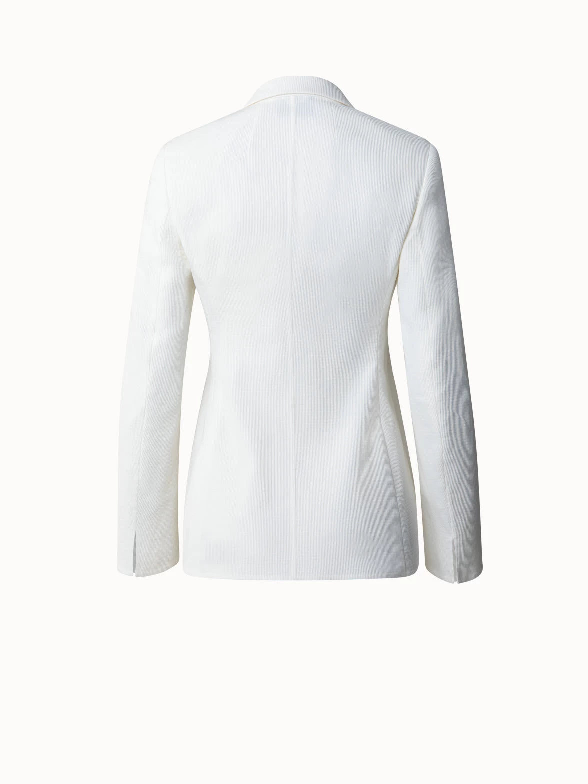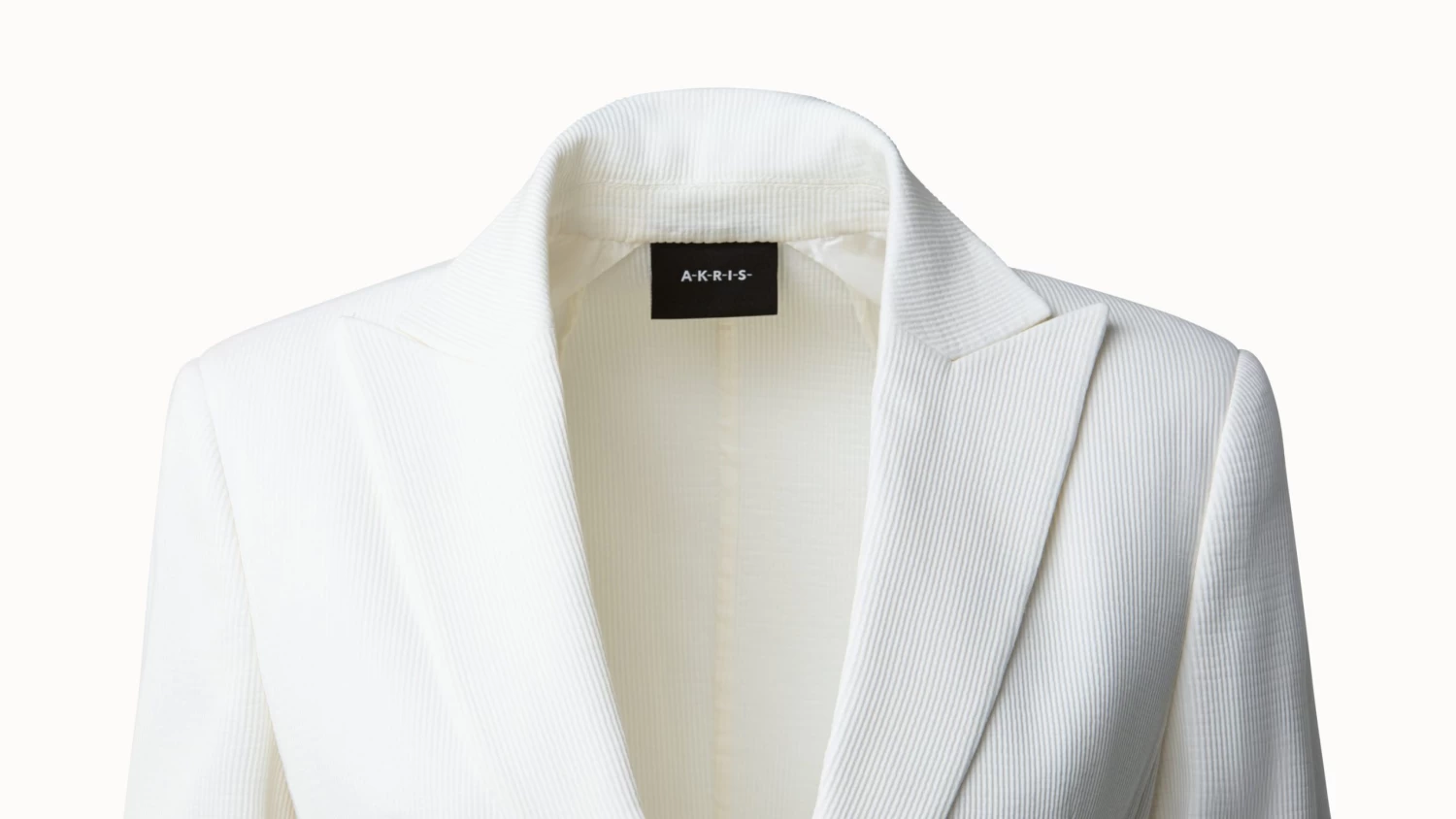 This timeless jacket gets a modern and artistic spin with the abstract star-shaped front button. Features an elongated lapel collar and seam pockets.