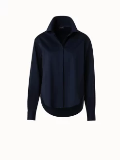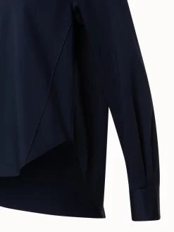 This Akris blouse is crafted in cotton gabardine, giving it a structured look and feel. The trapezoid stitching adds a signature Akris touch to this modern silhouette. Features a longer back and long volume sleeves.