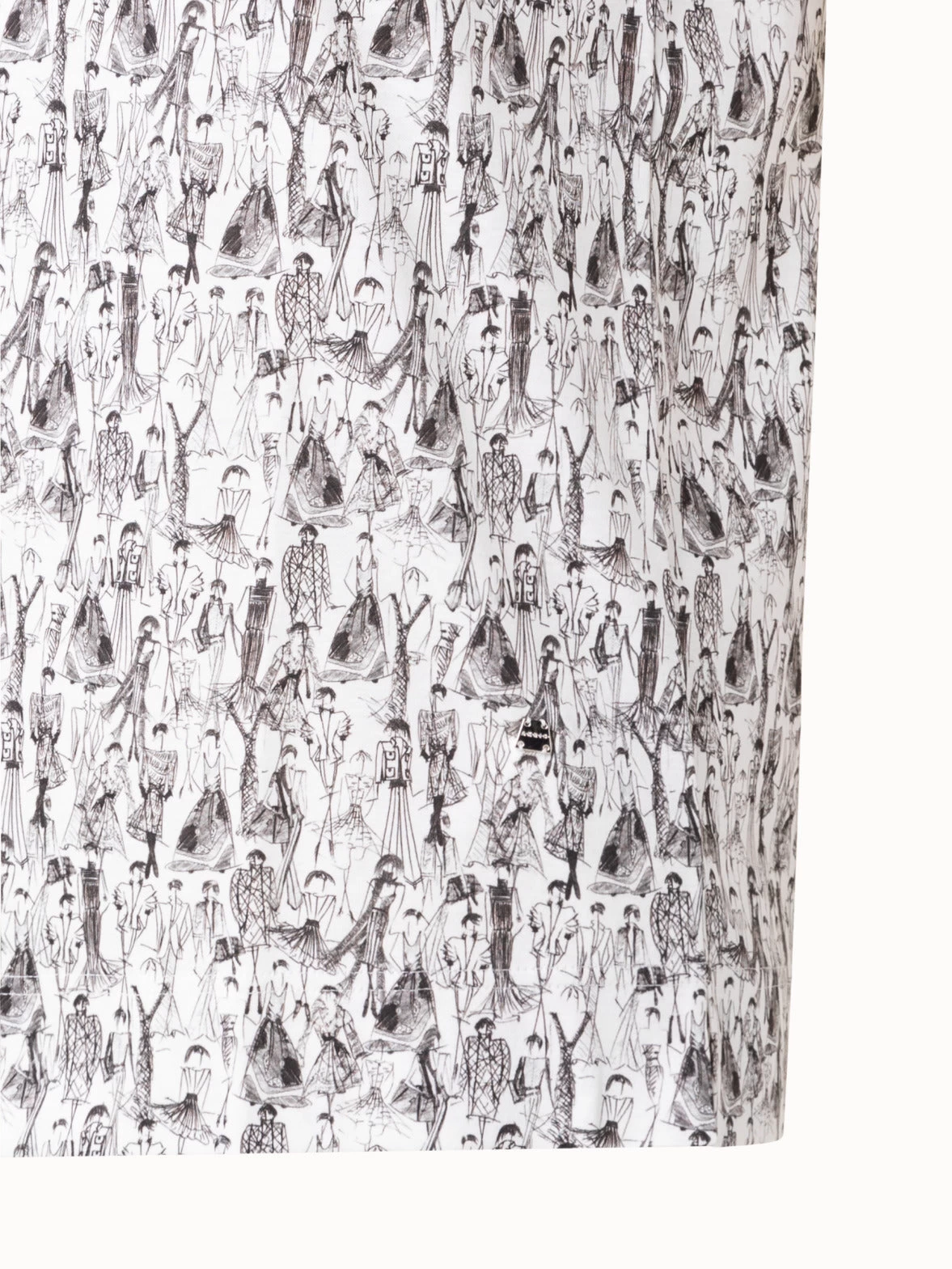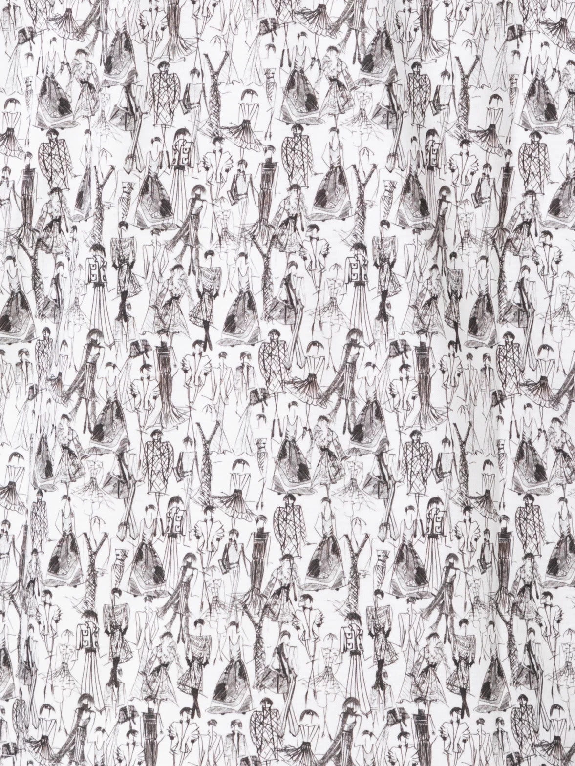 Displaying sketches by creative director Albert Kriemler, the Croquis Druck of Akris Spring 2023, tells a very personal story. Witty and charming, it was designed by his team as an anniversary surprise.