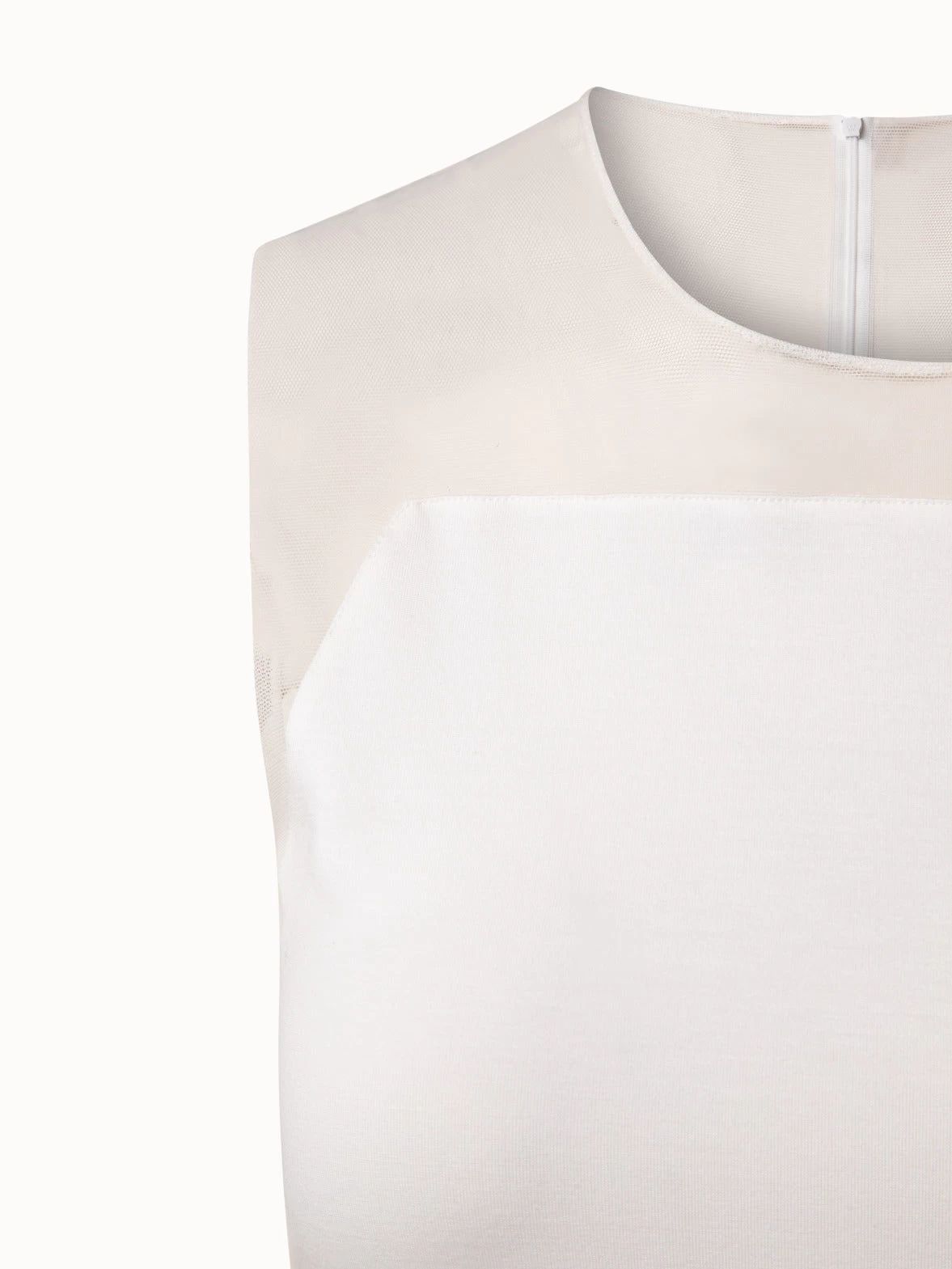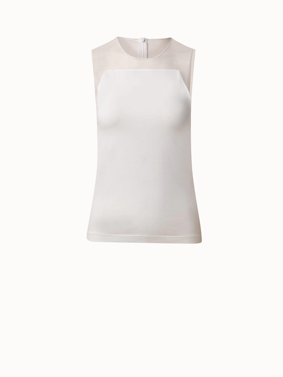 AKRIS Cotton Jersey Top With Tulle Shoulder