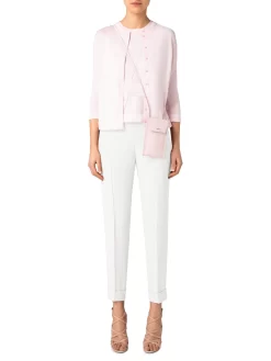 This sea island cotton knit tank top is a new Akris essential. Featuring a classic round neck, it stands out through its subtle hemstitch A detail. Complete the look with the matching cardigan.