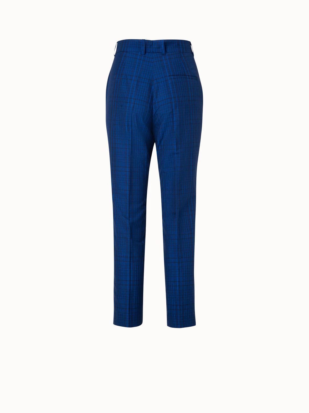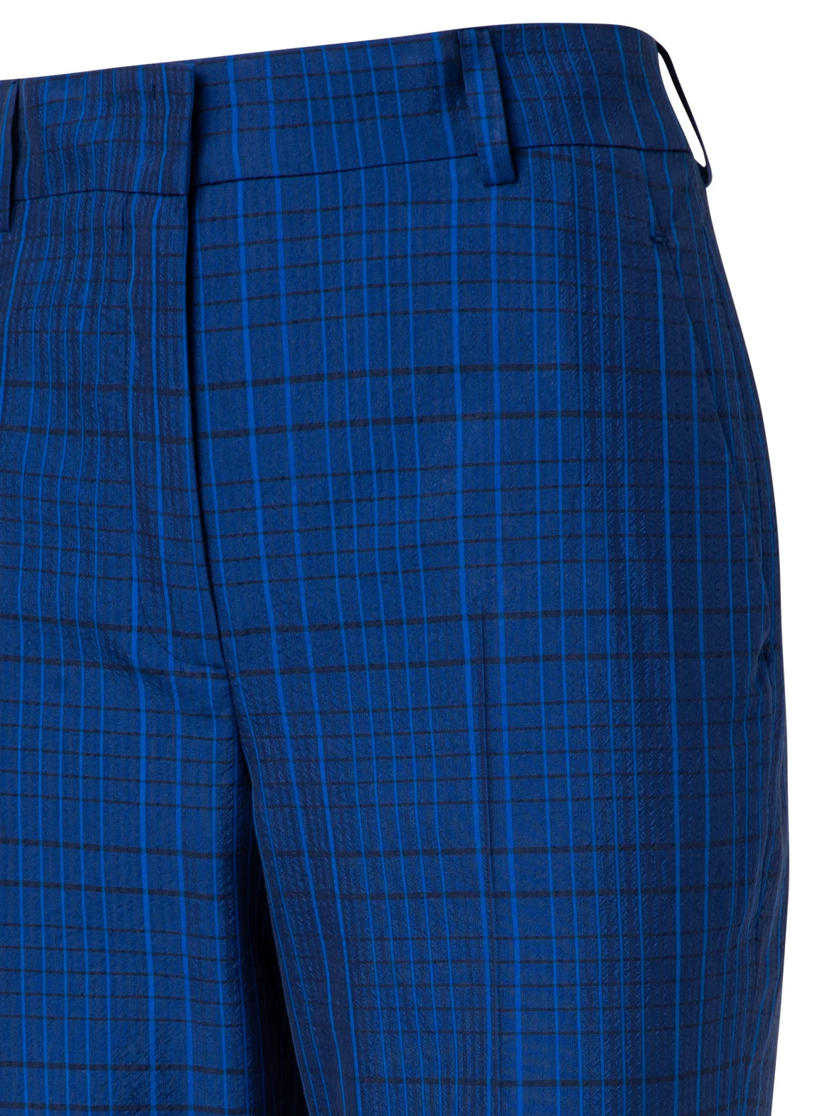 These Akris FLAVIN pants are crafted in a lightweight cotton-silk-seersucker with a subtle tonal check pattern. These tapered leg pants are cut for an ankle length. They feature a front closure and three pockets.