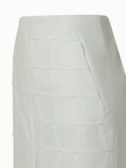 This Mirrored Trapezoid pencil skirt is intricately designed in an elegant and sleek design. Crafted in cotton denim stretch with the trapezoid design symbolizing the capital „A” in Akris, the skirt is a contemporary basic with a twist to elevate any outfit. Style it with a simple black T-Shirt as part of a versatile modern look.
