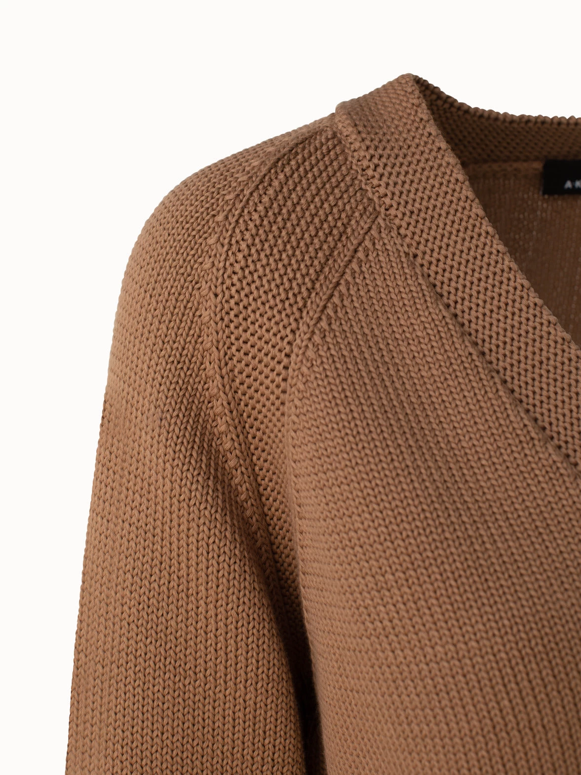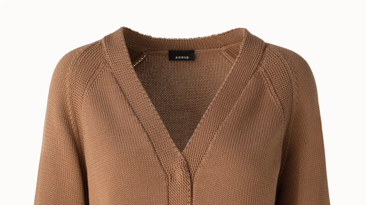 This boxy cardigan makes the perfect companion for a dress, skirt, or a pair of wide leg cropped pants. The covered front button panel and raglan sleeves add unique details to this refined piece.