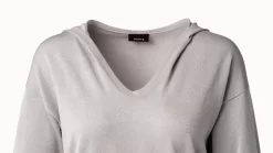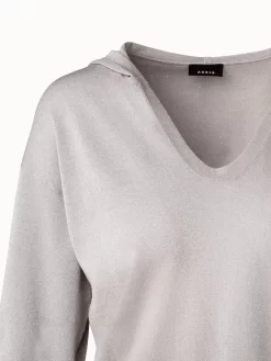 AKRIS Cropped Cotton Silk Lurex Knit Hoodie
