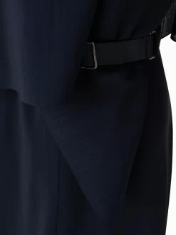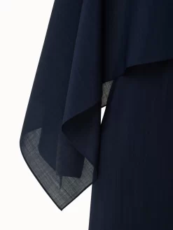 Long and airy, this sleeveless belted dress has side slits and a detachable shawl that adds to its sensual fluidity.