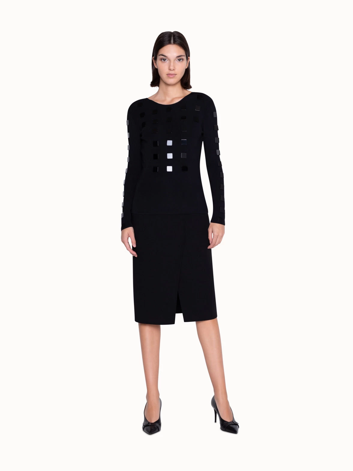 AKRIS Embellished Knit Pullover In Lurex Stretch With Deep V-Neck Back Cutout
