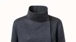 This cocoon style coat in double face cashmere with detachable lamb shearling trim exhibits signature Akris functionality. The stand up collar, covered button closure and pockets create a sleek and cozy silhouette.