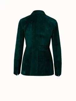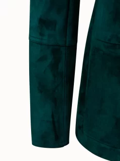 This covetable lamb suede jacket exudes timeless elegance. The fit is sleek and tailored with a shirt collar, button closure, and patch pockets. The striking new color of the season is a must-have for your wardrobe. Pair with our matching lamb suede Maxi pant for the full Runway look.