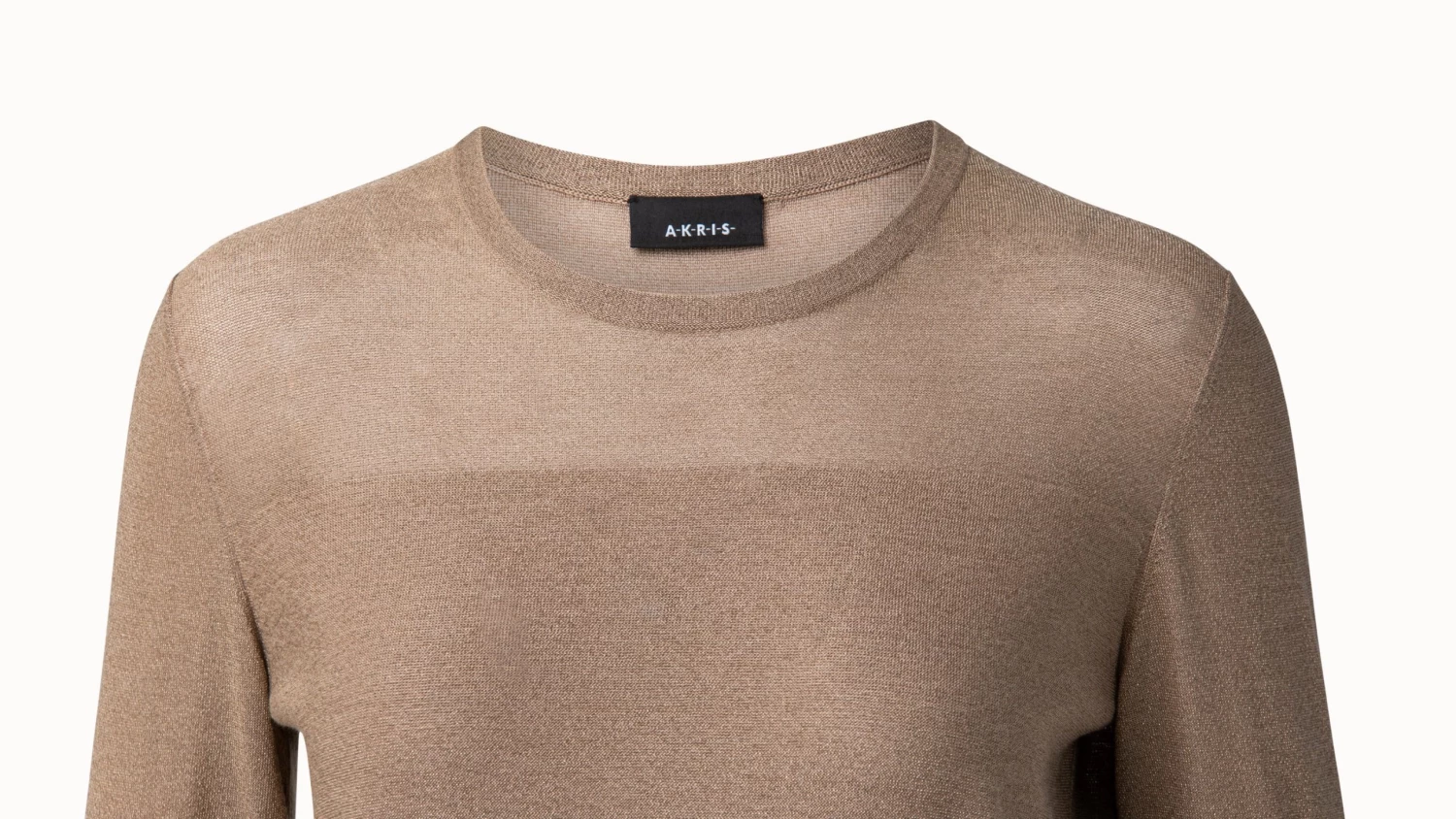 This is the neutral sweater you have been searching for. A perfect pairing for any pair of pants, this fitted sweater makes for an ideal base layer. The lurex thread adds a hint of shine.