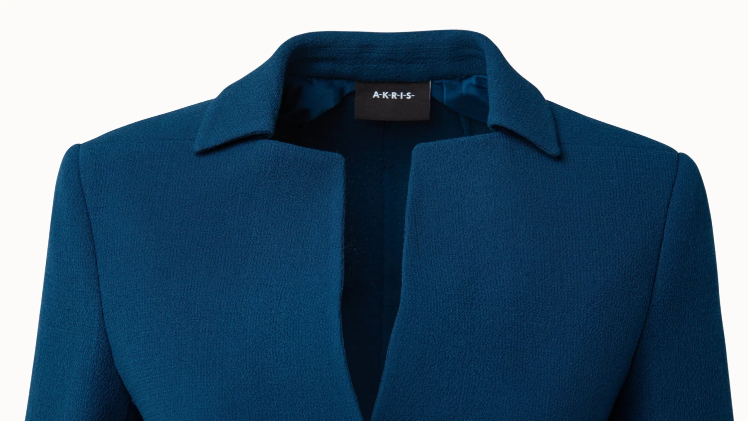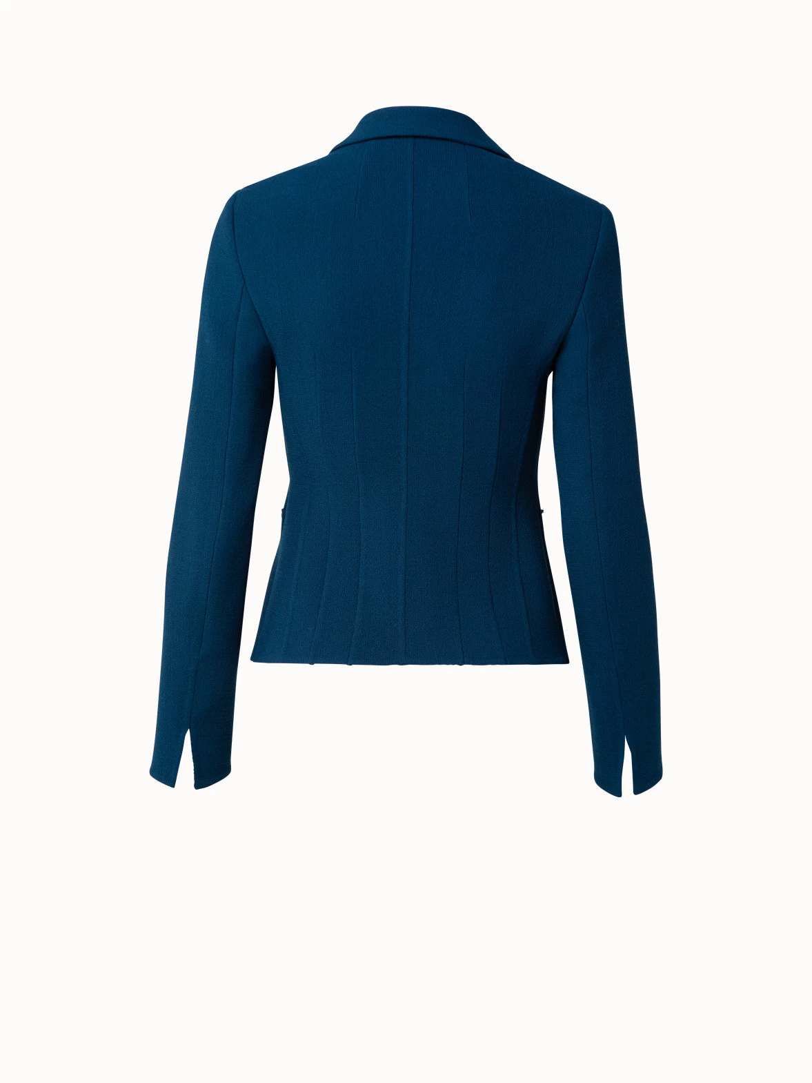jacket, wool crêpe double face, flat lapel collar,waist darts, covered button panel, pockets