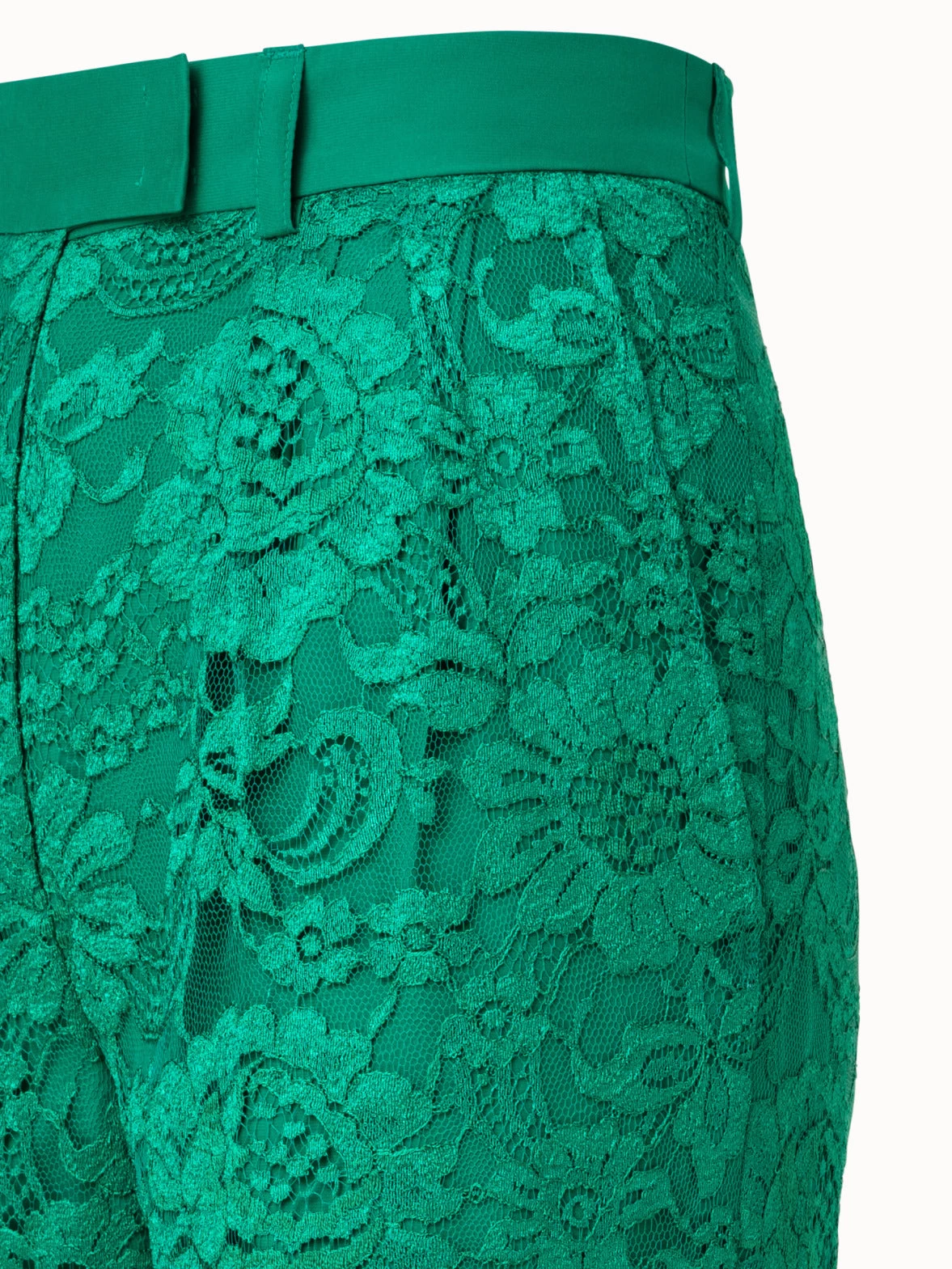 The Akris pants Fidelia are a revival of a vintage silhouette by creative director Albert Kriemler from the 1980s. It features a slightly tapered leg, creating a sleek shape. Waist pleats are a tailoring detail that ensures comfort while adding structure. These pants are crafted in a floral lace and feature a short lining, creating a stand-out style for warm weather occasions.