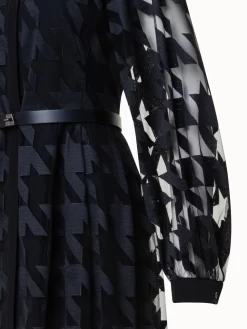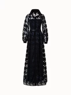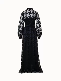 AKRIS Houndstooth Embroidery On Tulle Gown