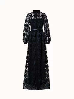AKRIS Houndstooth Embroidery On Tulle Gown