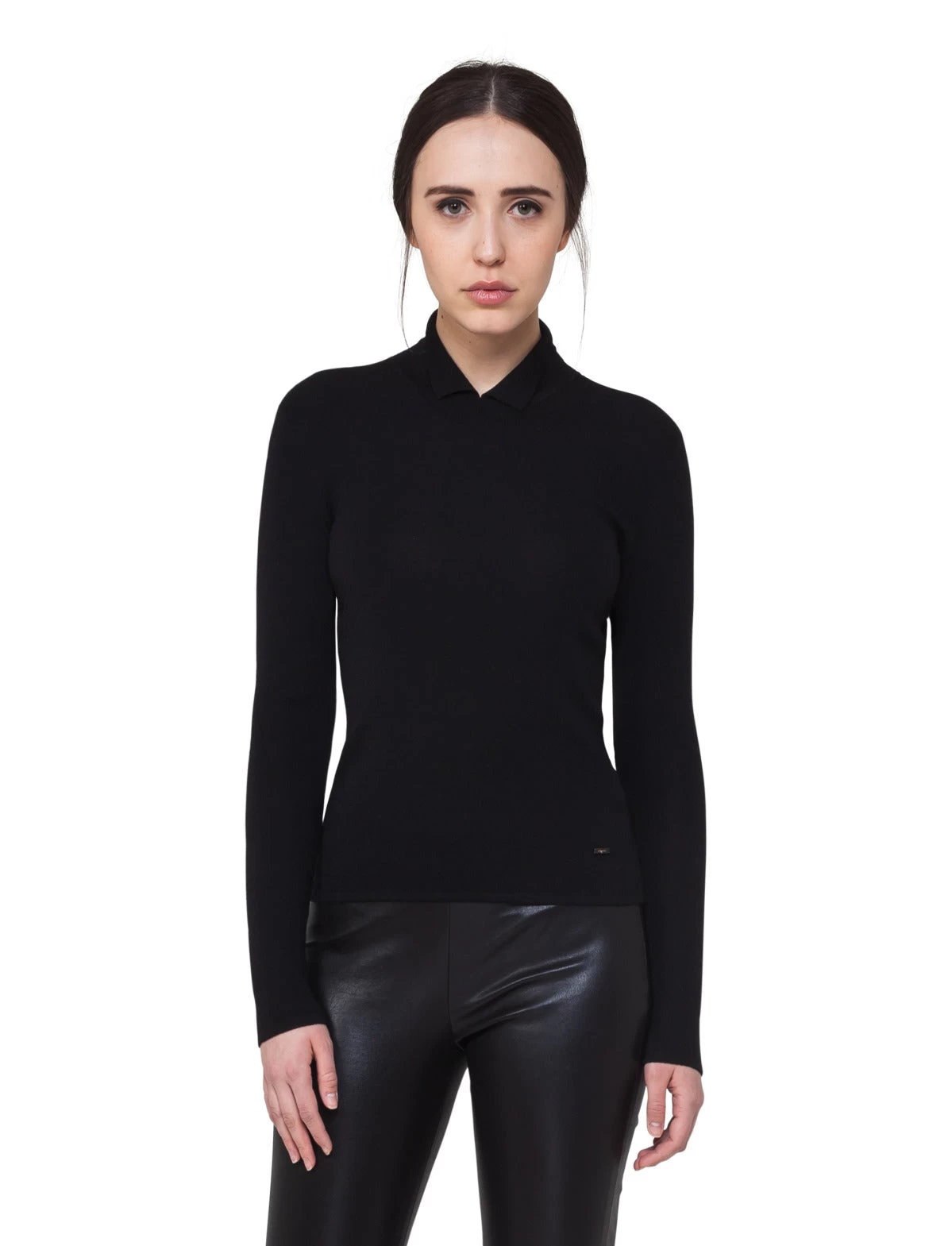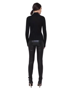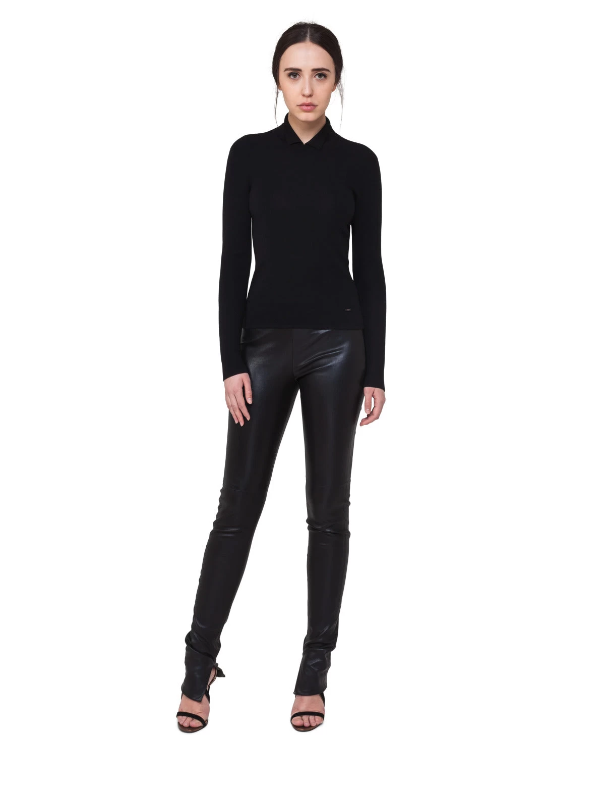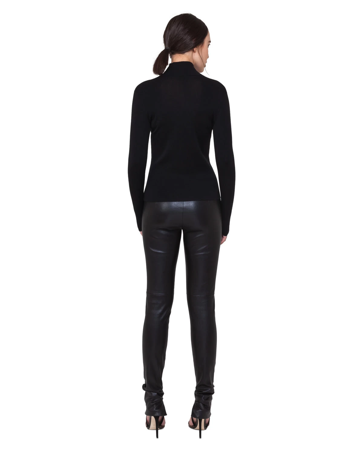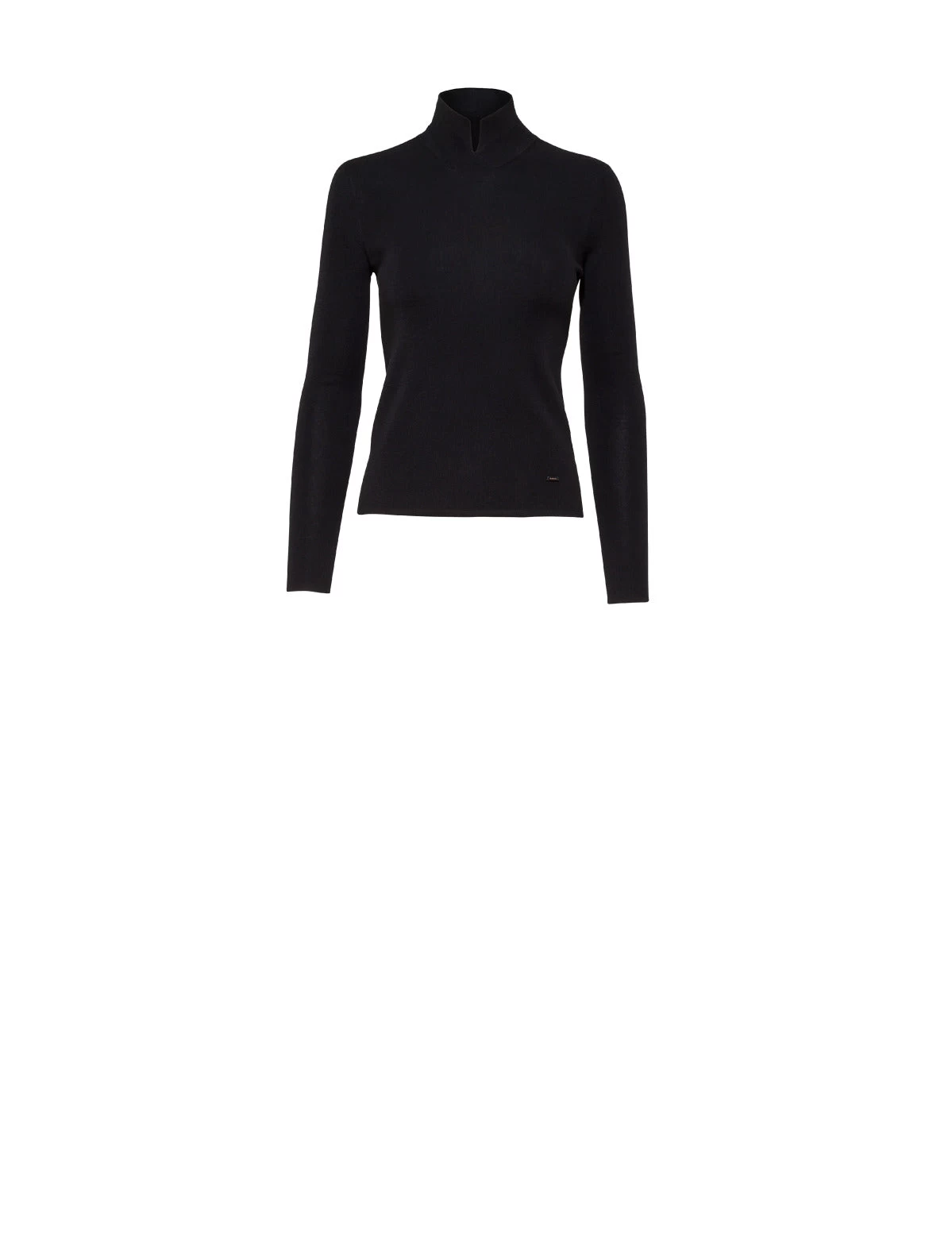 This fitted mock neck sweater has a front slit that allows for breathability, as well as the option to fold the sides down to create a makeshift collar. Craffted from a soft cashmere silk, this sweater will be your go-to when the temperature drops.
