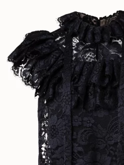 This Akris blouse is crafted in all-over floral lace. It features a ruffled stand-up collar and ruffled shoulders that create a flattering silhouette with a romantic touch.