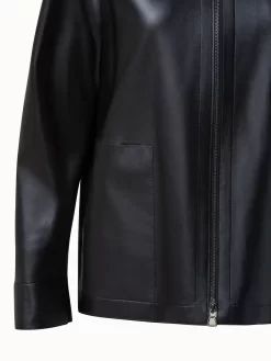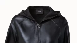 AKRIS Lamb Nappa Leather Zip Hooded Jacket