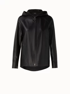 AKRIS Lamb Nappa Leather Zip Hooded Jacket