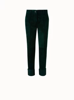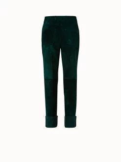 Our effortlessly cool and casual MAXI pant gets a sophisticated update in soft lamb suede. This traditional 5 pocket style features a front zip closure and cuffed ankle length leg. The versatile shape works perfectly with a lace up ankle boot and can be paired with the matching lamb suede jacket for a full Runway look.