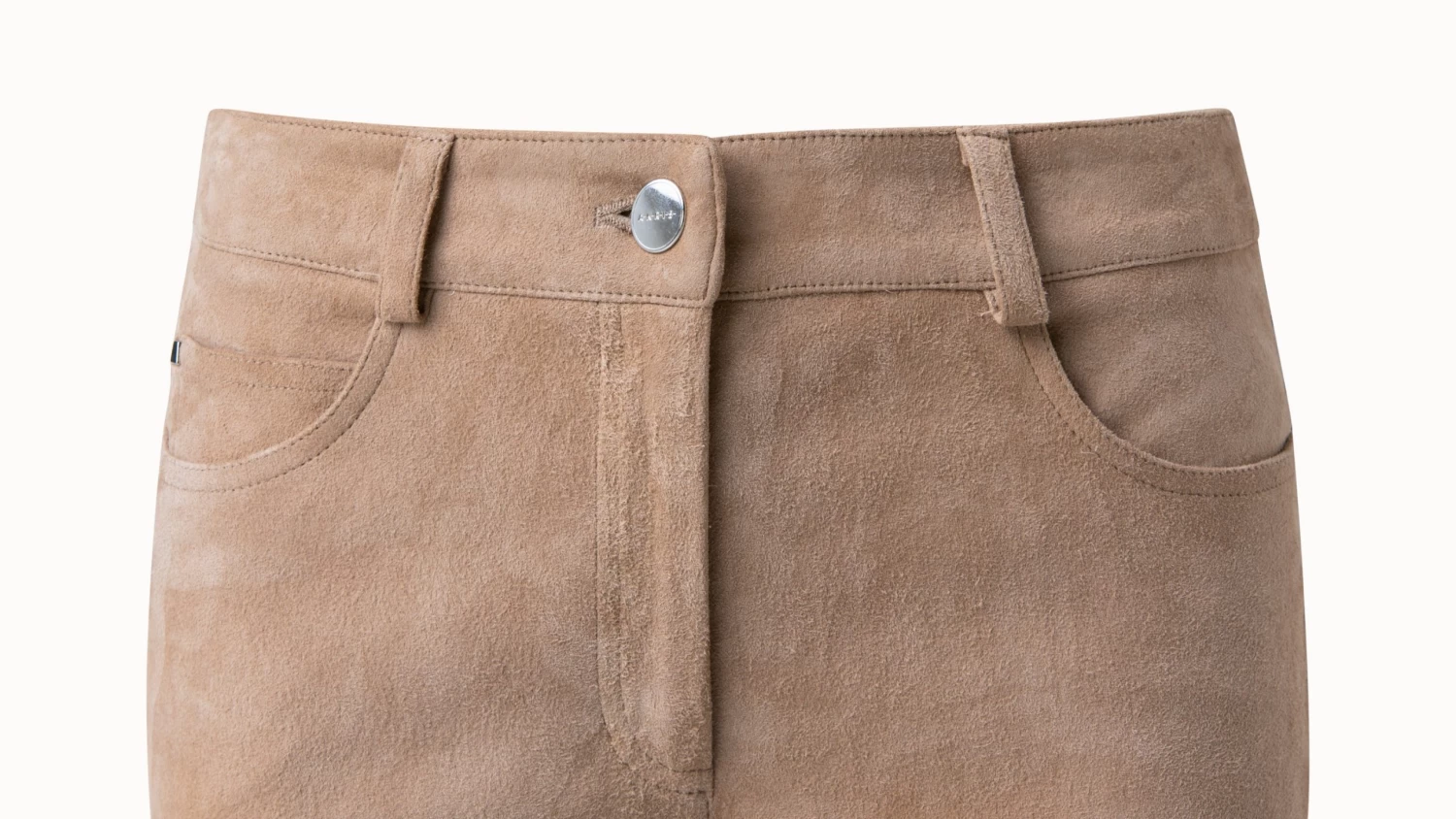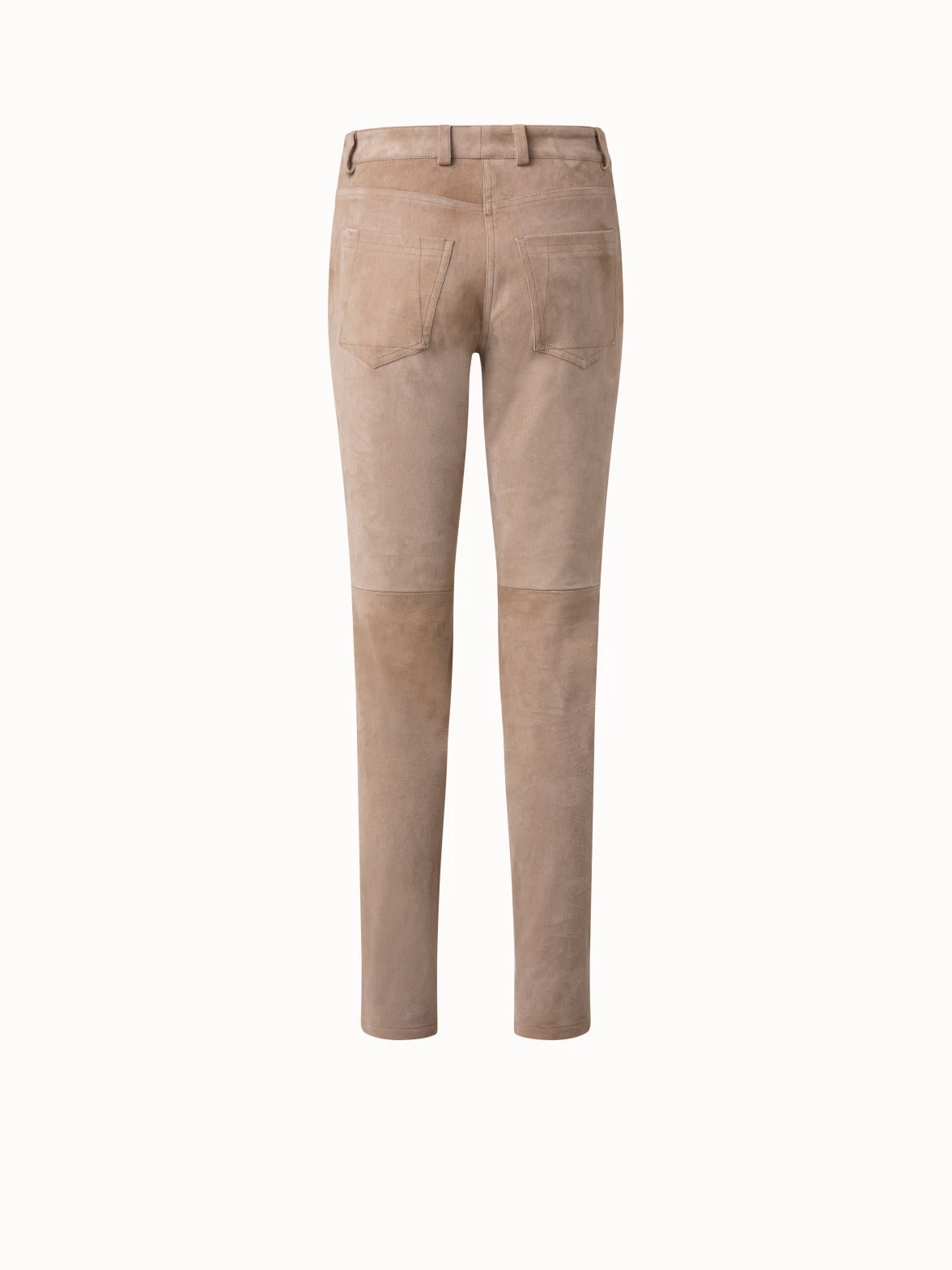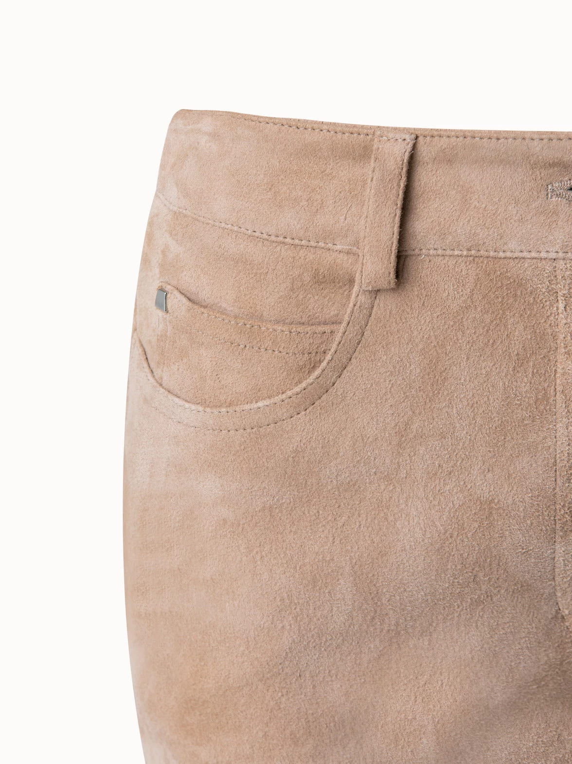 One of our bestselling silhouettes, the MAGDA pant is the perfect tailored trouser with a modern twist. This mid-rise style, cut from luxurious lamb suede stretch, is ultra-comfortable and flattering. The pant features five pockets, front closure, and a slim, ankle length leg.