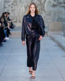 The Akris pants Fini are a revival of a vintage silhouette by creative director Albert Kriemler from the 1980s. The straight-leg silhouette features a high waist with front pleats and a yoke that add structure and a unique look. The grosgrain trim completes this masterfully tailored style. These Akris pants Fini are crafted in soft Nappa lambskin leather that creates a luxurious look and feel.