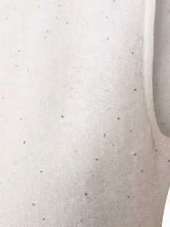 Fine sequins add a subtle shine to this cotton linen blend knit tank top. Wear it with the matching cardigan for an understated look that stands out at second glance.
