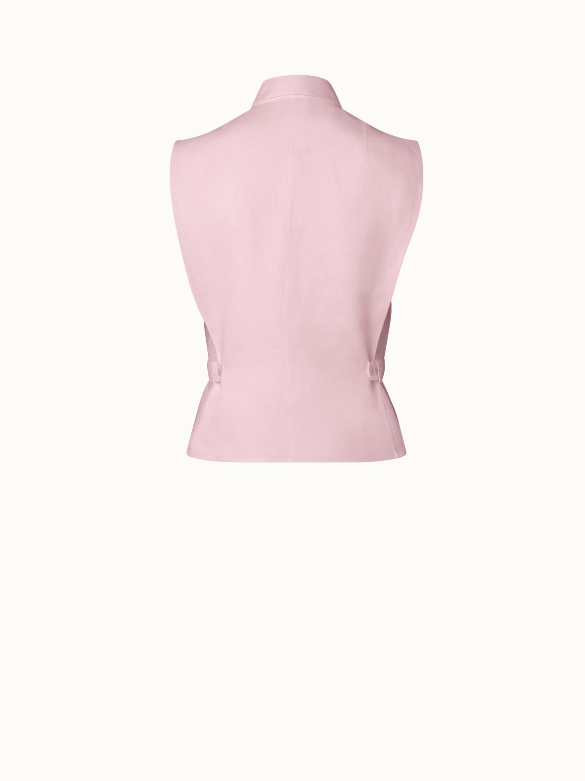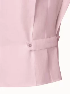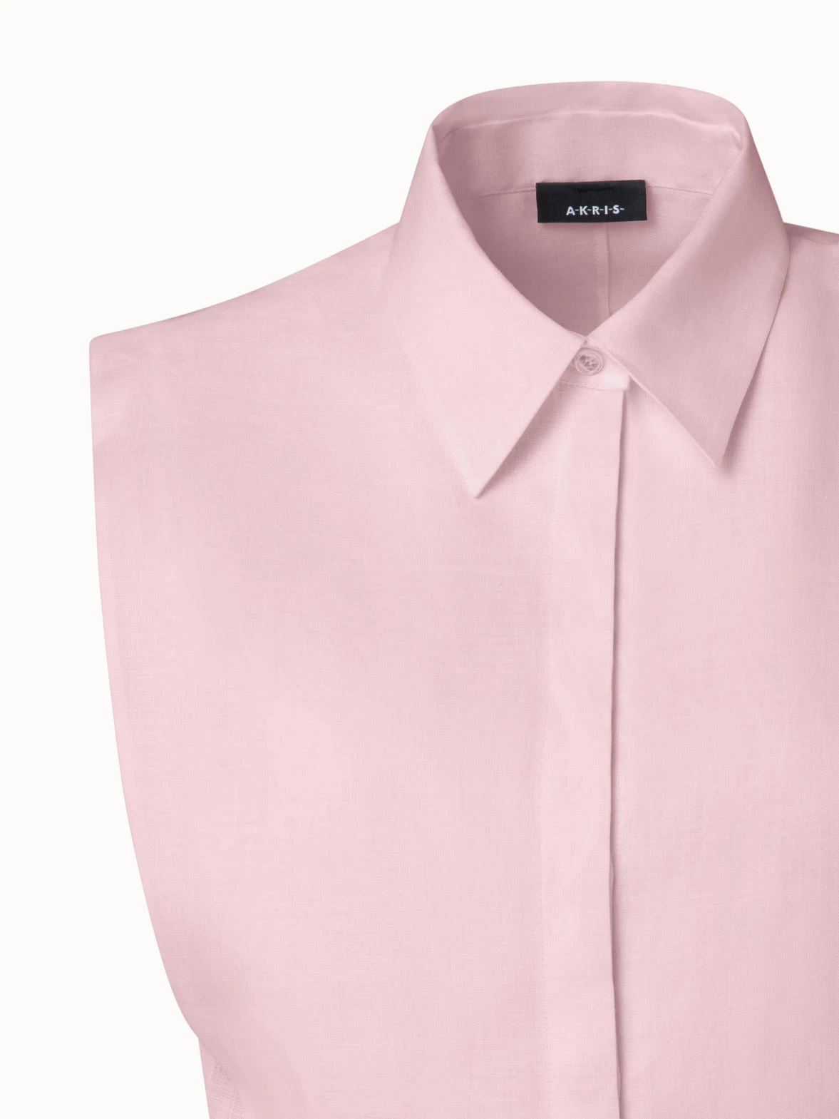 This Akris blouse is crafted in linen voile, giving it a lightweight feel and tactile structure. Inspired by Albert Kriemler’s own designs from the 1980s, it has a powerful shape that takes in the waist with side tabs. The shirt collar and covered button placket complete this sleek silhouette.
