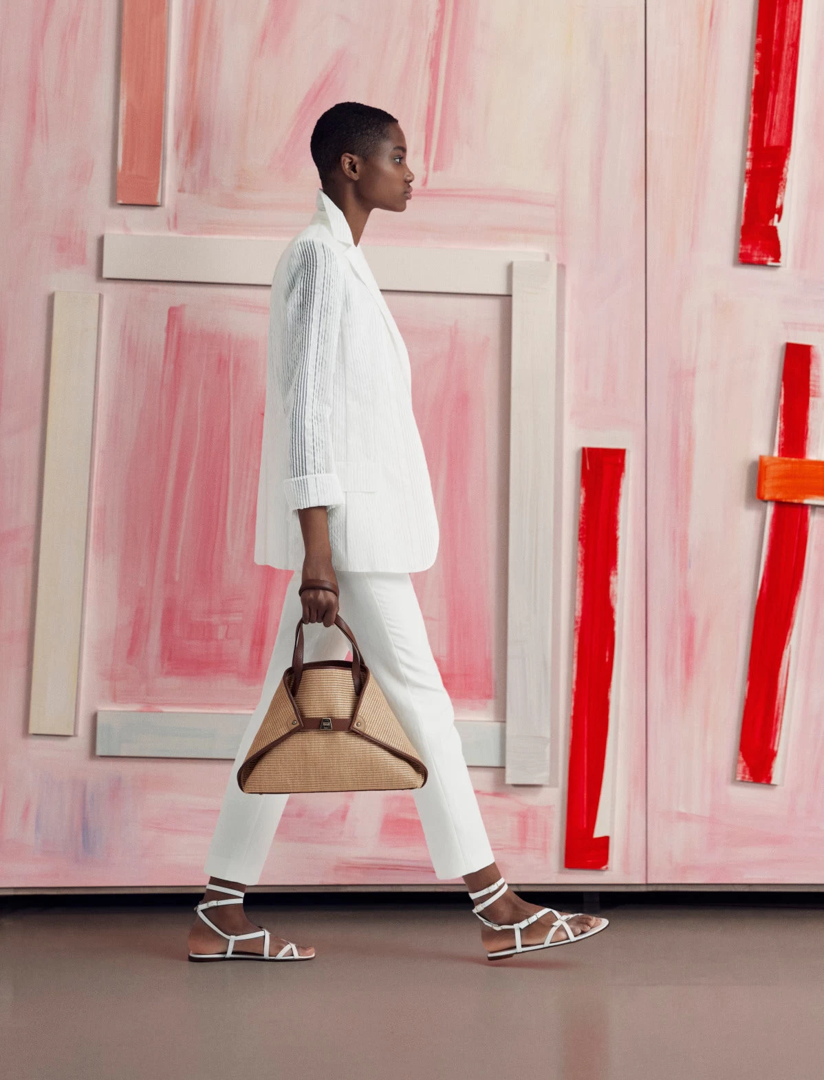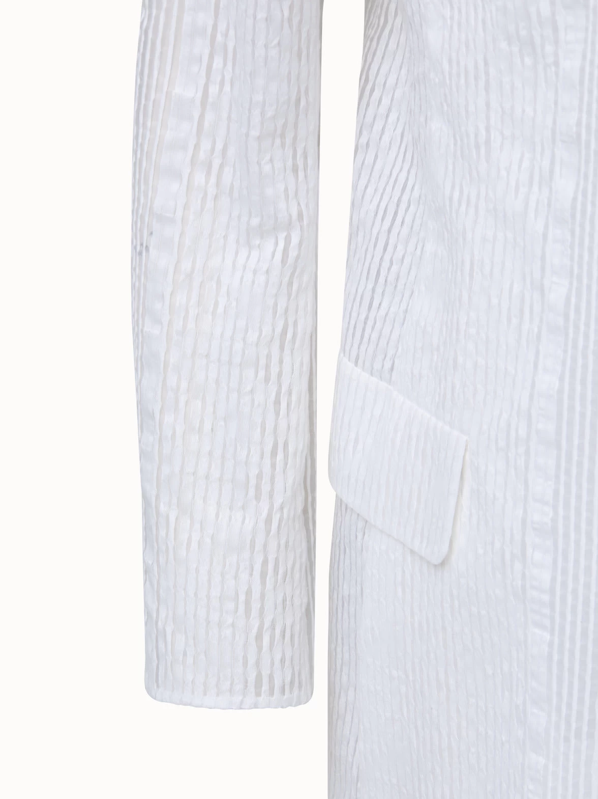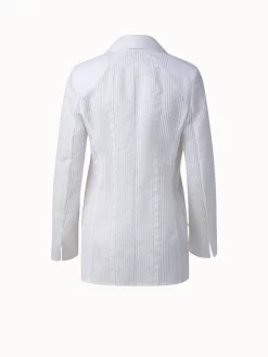 AKRIS Long Cotton Organza Striped Jacquard Jacket