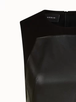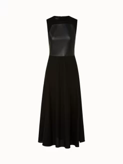 AKRIS Long Cotton Twill Dress With Leather Apron Bodice