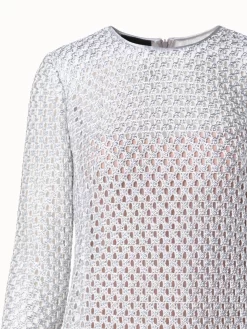 AKRIS Metallic Lurex Cotton Crochet Embroidery Sheath Dress