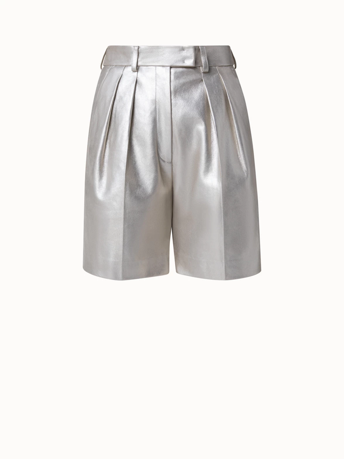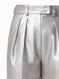 AKRIS Pearlized Lambskin Leather Bermuda Shorts