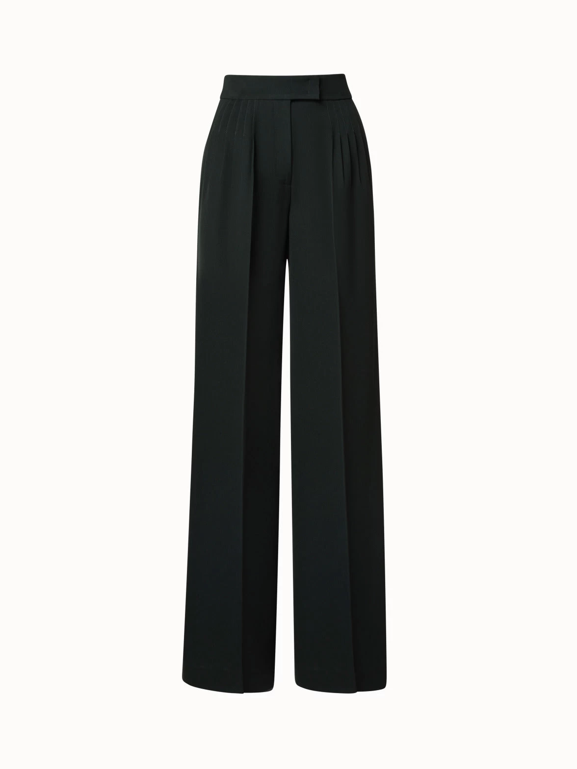 AKRIS Pleated Wide Leg Wool Gabardine Pants