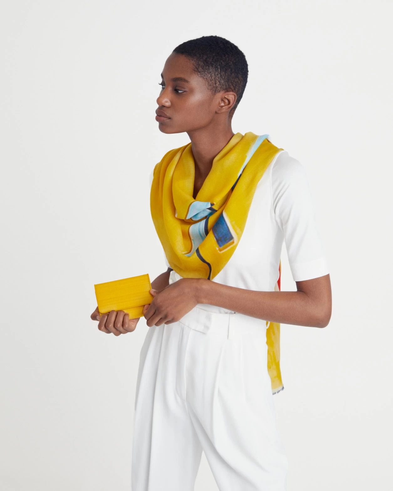 Wrap yourself up in this geometric printed cashmere silk scarf. Inspired by German artist Imi Knoebel, Akris Creative Director Albert Kriemler incorporated these abstract shapes in this beautifully unique cashmere silk scarf. Measures 65 x 200 cm / 25.6 x 78.7 in.