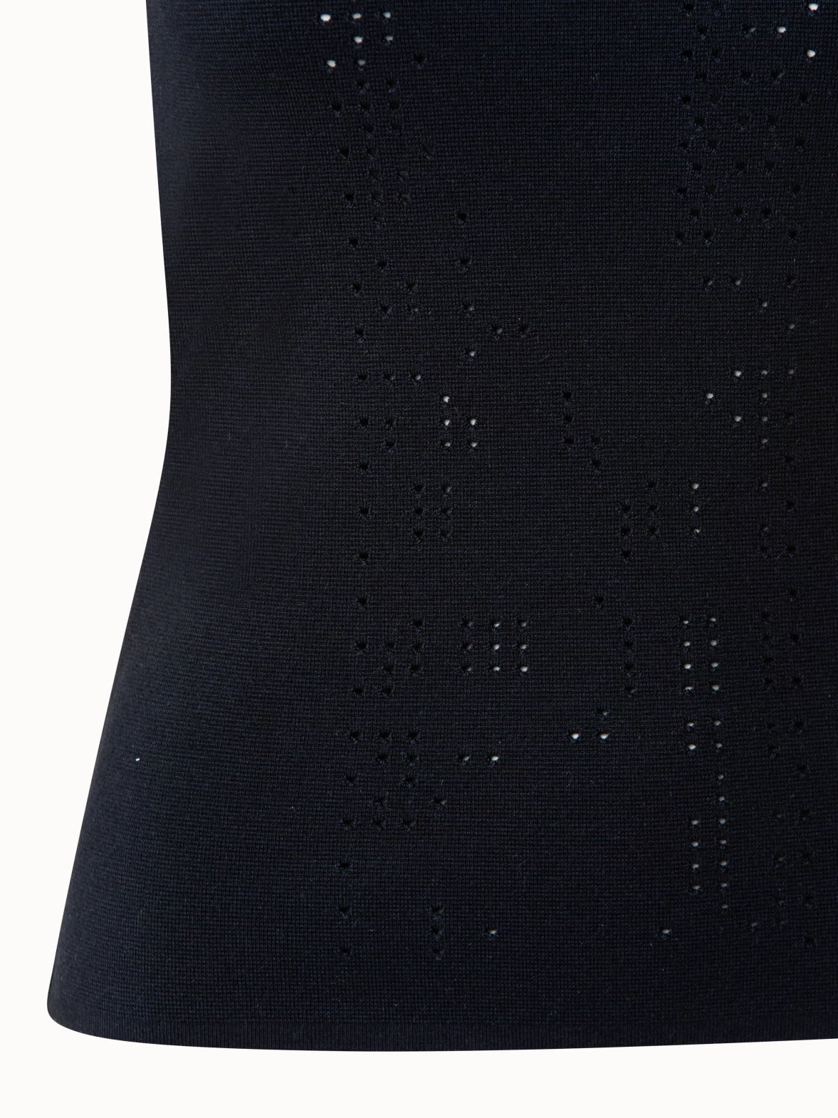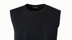 This fitted knit tank in wool silk stretch features a subtle punchcard ajouré detail down the front. The round neck, sleeveless style is perfect for layering under a jacket, and the ajouré detail adds a simple touch of novelty.